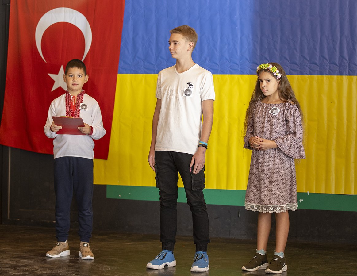 Babası Ukrayna'da olan 9 yaşındaki Danil Priymak, Atatürk'ü saygıyla, sevgiyle andıklarını söyledi. Priymak, "Mustafa Kemal Atatürk'ü çocukları çok seven ve dünyada barış için savaşan bir insan olarak tanıyorum. Atatürk çocuklar için çok önemli çalışmalar yapmış ve dünyaya da hep barış mesajları vermiş. Biz de barış istiyoruz" dedi.