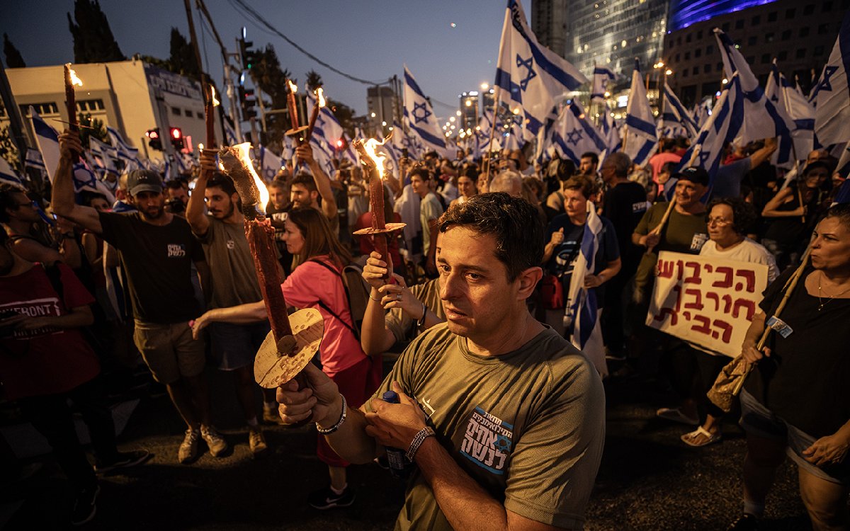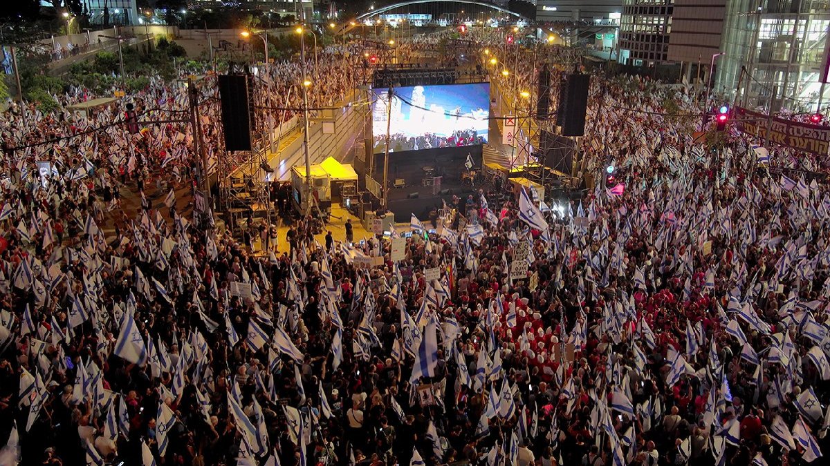 İsrail'de Netanyahu hükümetinin yargı düzenlemesi ve diğer sağ politikalarına karşı çıkan protesto hareketi, 6 aydır ülke genelinde gösterilerine devam ediyor. (AA)