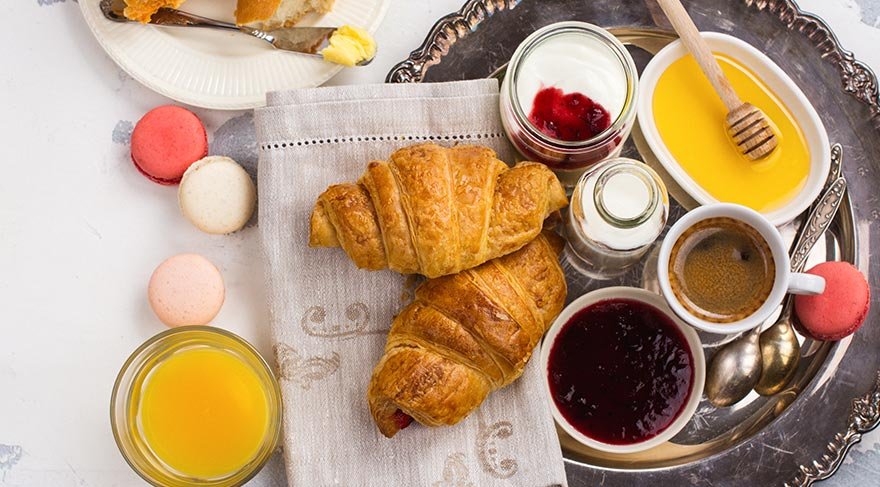 Genellikle tatlılardan oluşan, güne bomba gibi başlamanızı sağlayan Fransız kahvaltısının olmazsa olmazı tabii ki kruvasan. Klasik Fransız kahvaltısında kruvasan, krep, “Pain au Chocolat” ismindeki çikolatalı ekmek ve reçel çeşitlerinin yanında genellikle portakal suyu tüketiliyor. Fransa denince akla ilk gelen yiyecek olan bageti ve çeşit çeşit peynirleri kahvaltıda yemeyi tercih etmeyen Fransızlar, aslında kahvaltıyı öğle yemeğine hazırlık olarak yapıyor.