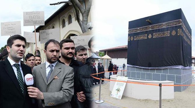 İstanbul Ülkü Ocakları'na bağlı yaklaşık 100 kişilik grup, saat 15.30 sıralarında, halen bahçesinde Kâbe maketinin kurulu olduğu Bağlarbaşı Kongre ve Kültür Merkezi önünde toplandı. “Can Verir Yolunda Bozkurtlar Ya Resulallah" yazılı pankart açan grup “Başka şubemiz yoktur, Kâbe “Kâbemiz tektir taklit edilemez" yazılı dövizler taşıdı. Grup, “AKP şaşırma sabrımızı taşırma" ve "Kanımız aksa da zafer İslam'ın" şeklinde slogan attı.