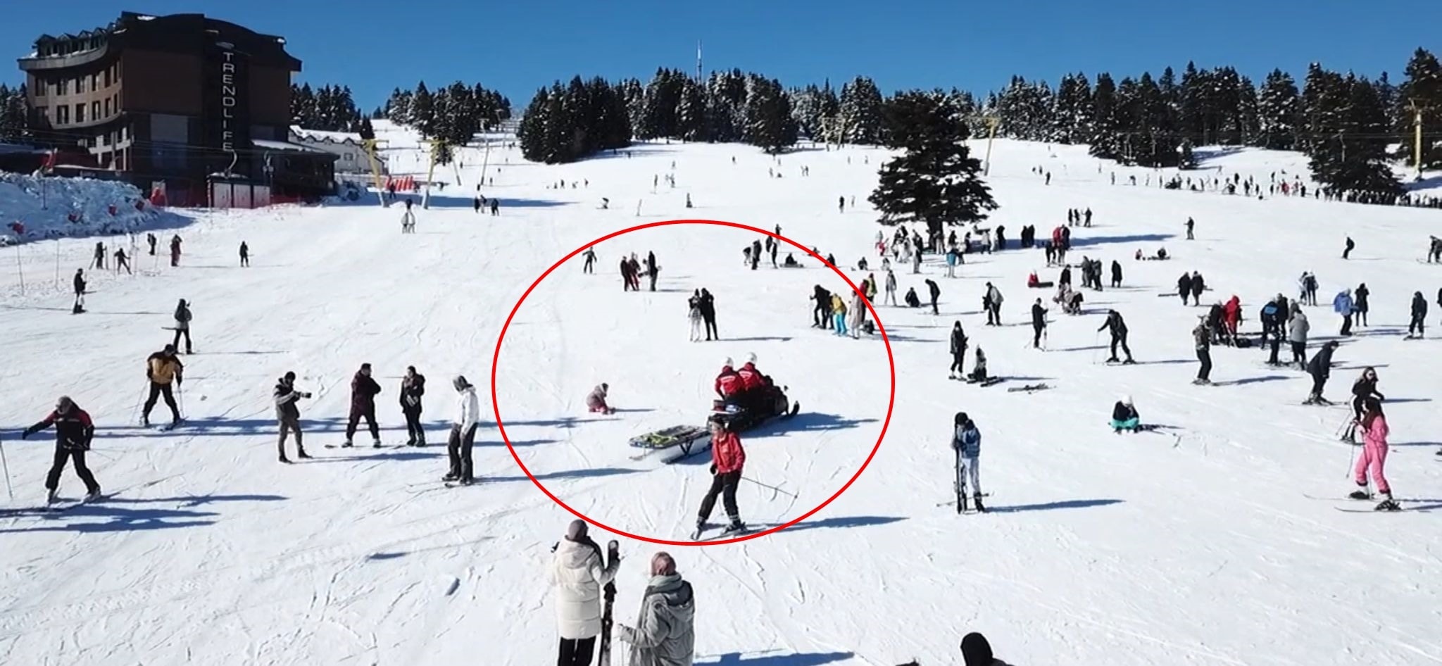Kayakseverlerin 'Beyaz Cennet' olarak tanımladığı Uludağ'da bugün 1. Oteller Bölgesinde kayak yapan iki kişi çarpıştı. Yaralanan kişilere ilk müdahaleyi olay yerinin yakınında bulunan JAK ekipleri yaptı.