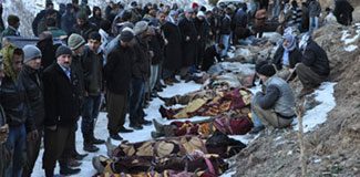 Şırnak Uludere’de 28 Aralık 2011’de kaçakçılık için yürüyerek Irak’a geçen köylüler, dönüş yolunda PKK’lı terörist sanılmış ve Türk savaş uçaklarınca bombalanmıştı. Olayda 34 köylü ölmüştü. Ölenlerin aileleri kendilerine devletin verdiği 123’er bin liralık tazminata “Failler bulunana kadar almayız” diye dokunmamışlardı.Bugün Uludere olayının 2. yıldönümü ve hâlâ olayda ihmali bulunanlar ortaya çıkarılmadı, soruşturma sürüyor. Dün İstanbul, Van, Antalya ve Hakkari’de Uludere olayıyla ilgili anma ve protesto gösterileri düzenlendi. Uludere kurbanlarının köyleri olan Güzelyazı ve Ortaca’da bugün anma törenleri düzenlenecek.