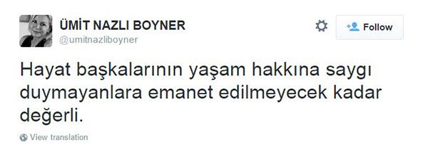 Cumhurbaşkanı Recep Tayyip Erdoğan'ın TÜSİAD Başkanlığı döneminde tepkisini çeken Boyner'in attığı tweet dikkat çekti. Boyner tweetinde, "Hayat başkalarının yaşam hakkına saygı duymayanlara emanet edilmeyecek kadar değerli" ifadelerini kullandı.