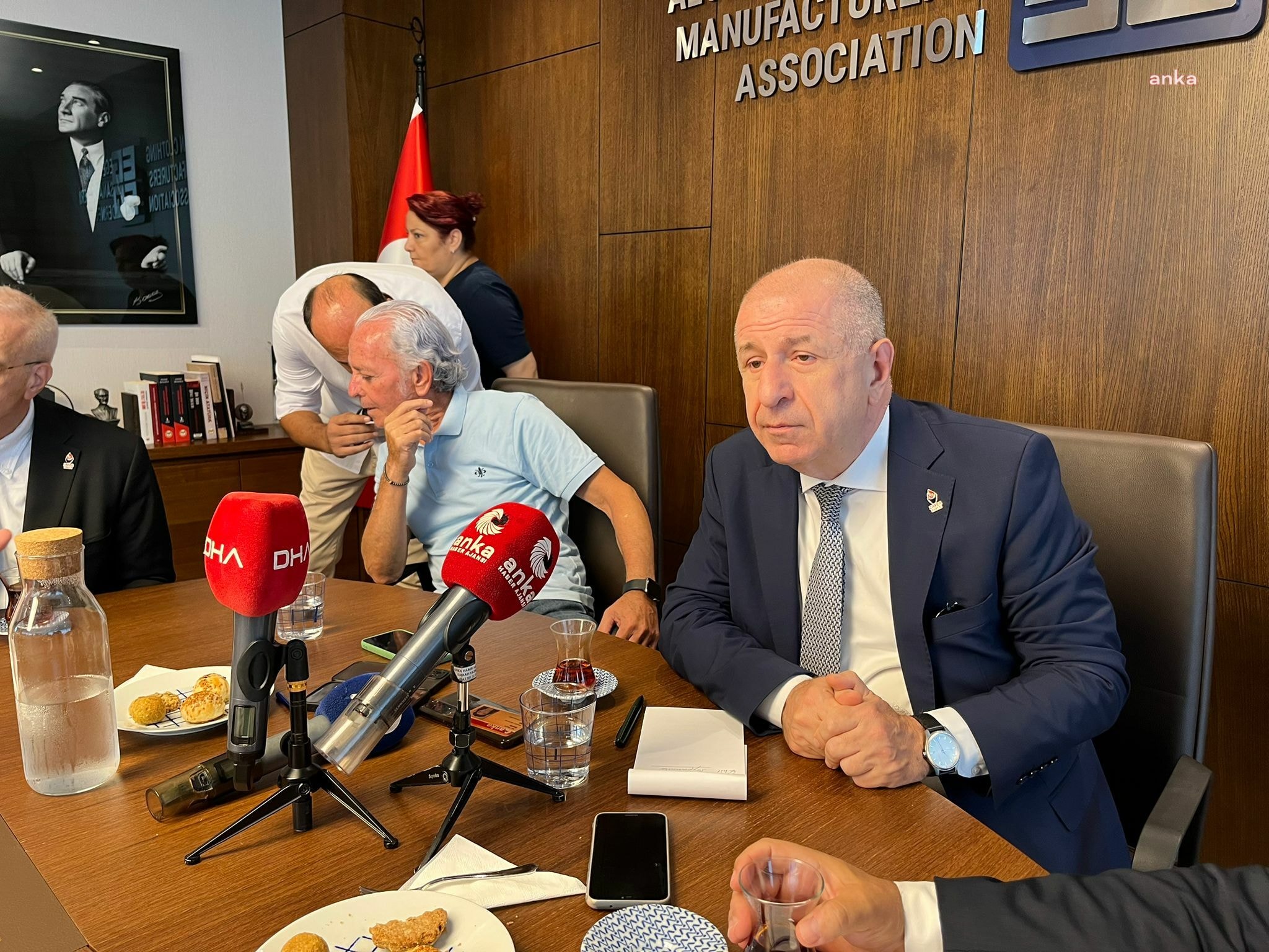 Zafer Partisi Genel Başkanı Ümit Özdağ, İzmir programı kapsamında Ege Giyim Sanayicileri Derneği’ni ziyaret etti. Yönetim Kurulu Başkanı Hayati Ertuğrul ve yönetim kuruluyla bir araya gelen Özdağ, sektörün sorun ve taleplerini dinledi. İhracatçılar kurun enflasyon kadar artmasını istediklerini belirtirken, Özdağ da yeni vergi paketi ve emekli maaşlarına yapılan zamma tepki gösterdi.