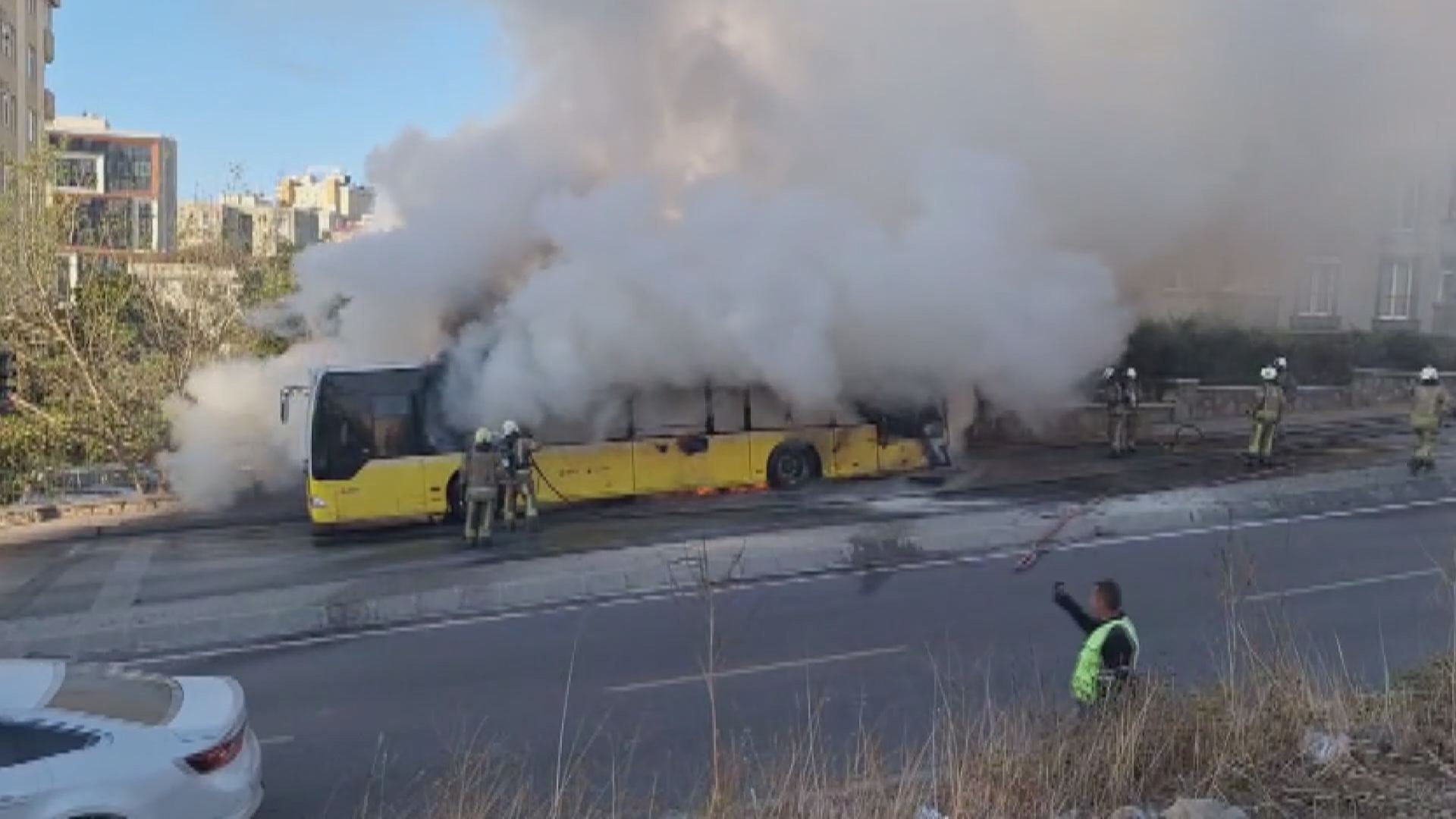 Ümraniye Hatboyu Caddesi’nde seyir halindeyken bir İETT otobüsünün motor bölümünde yangın çıktı. Şoför, otobüsü durdurarak yolcuları tahliye etti. Kısa sürede büyüyen yangına itfaiye ekipleri müdahale ediyor.