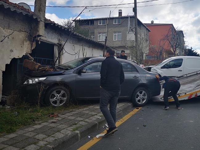 Ümraniye'de kaza yapan otomobil gecekonduya girdi