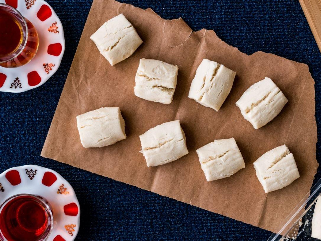 Daha sonra parçalar halinde alıp şekil verin. Yağlanmış fırın tepsisine dizin. Önceden ısıtılmış 160 derecelik fırında 15 dk pişirin. Fırından çıkarınca soğuduktan sonra pudra şekeri serperek servis edebilirsiniz.