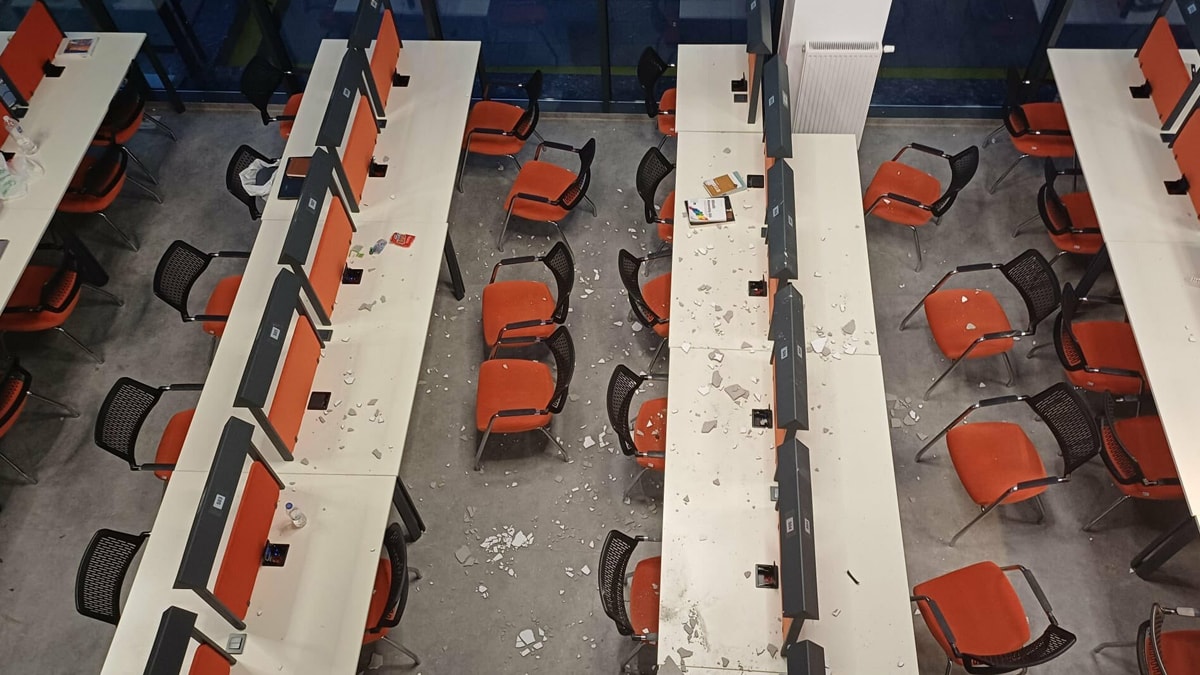 Yıldız Teknik Üniversitesi’nde (YTÜ) şubat ayında hizmete giren kütüphanenin tavanından kopan parçalar, öğrencilerin çalışma masalarına düştü.