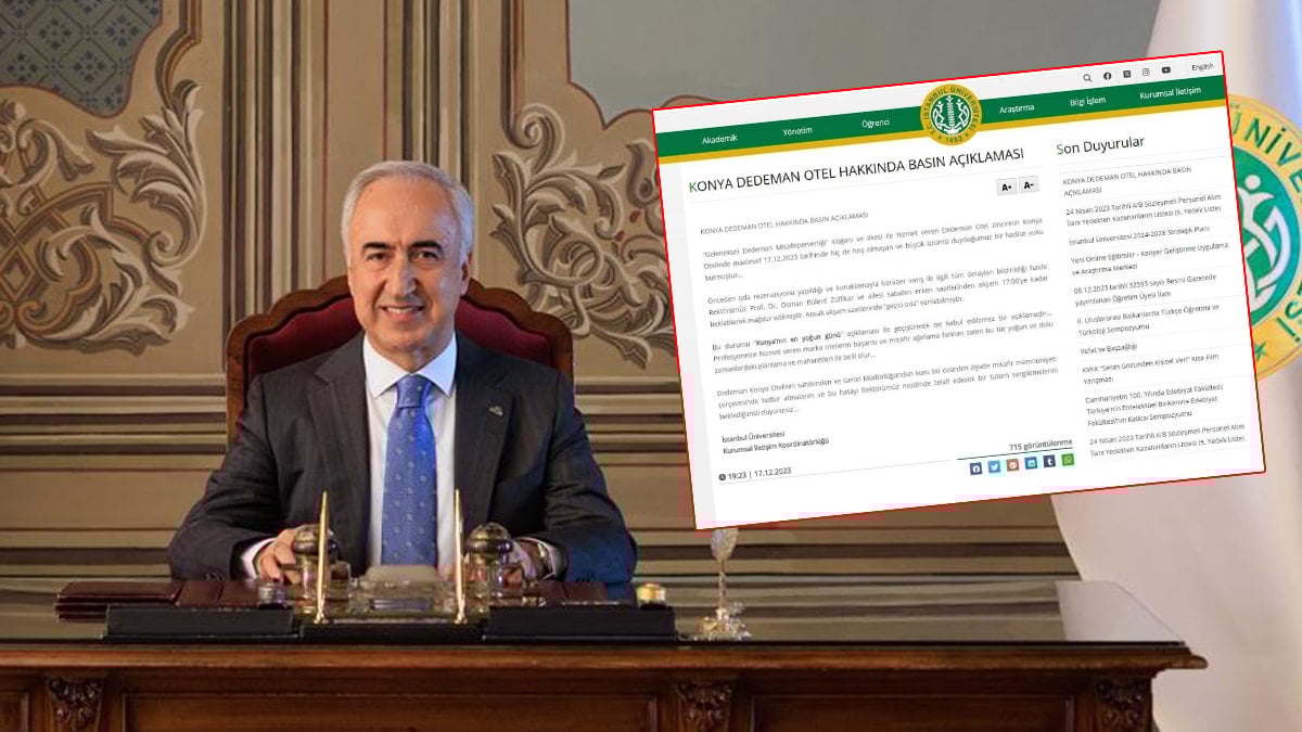 Cumhurbaşkanı Recep Tayyip Erdoğan tarafından 1 Ağustos’ta İstanbul Üniversitesi'ne rektör olarak atanan Prof. Dr. Osman Bülent Zülfikar'ın Şeb-i Arus için geldiği Konya'da yaşadığı otel mağduriyetini üniversitenin sitesinde yayımlandı.