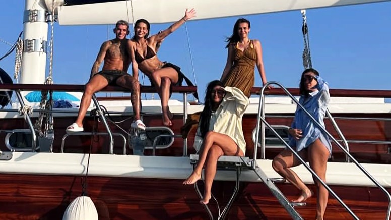 Dostlarının da bulunduğu teknede fotoğraf çektiren Devrim Özkan ve Lucas Torreira yan yana verdikleri pozu takipçileriyle paylaştı.