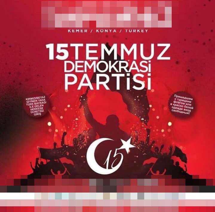 İşte Konya ve Kemer'i karıştıran '15 Temmuz Demokrasi Partisi' için kulüpten yapılan o açıklama "İşletmemizin bir kurtuluş günü olarak gördüğü ve milletimizin şanlı bir zafer kazandığı 15 Temmuz Demokrasi ve Özgürlükler Günü dolayısıyla hazırlamayı düşündüğü etkinlik sosyal medyada tamamen çarpıtılarak amacının dışına çekilmiştir. Kulüp etkinliklerimizi düzenleyen ekip, tamamen saf ve vatanperver duygular ile şimdiye kadar nasıl 19 Mayıs Gençlik ve Spor Bayramı Etkinliği, 30 Ağustos Zafer Bayramı etkinliği düzenledi ise bugünü de milletimizin yazdığı bir destan olarak görmüş ve bu duygularla bir organizasyon planlamıştır. Söz konusu organizasyon çeşitli yanlış anlaşılma ve yönlendirmelerle, sosyal medya üzerinden şehit yakınlarımızı ve milletimizin aziz değerlerini incitecek bir noktaya sürüklenmesi üzerine iptaline karar verilmiştir. Tüm şehitlerimizin aziz ruhlarına Allah'tan rahmet dileriz. Sosyal medya hesabımızda kısa süreli de olsa yayınlanan tanıtım nedeni ile başta tüm şehit yakınlarımız olmak üzere aziz milletimizden özür dileriz"