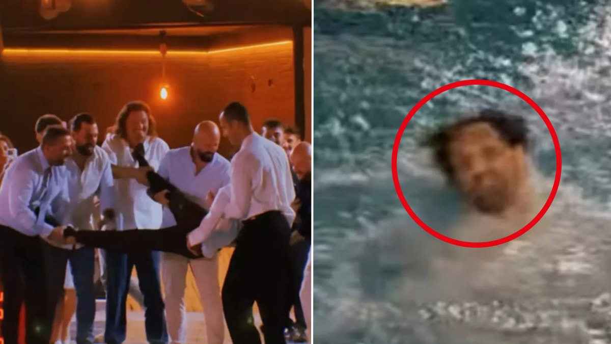 Düğün gecesinde Taner Rumeli’nin göbek attığı anlar dikkat çekerken, arkadaşları tarafından havuza atıldığı eğlenceli anlar da geceye renk kattı.