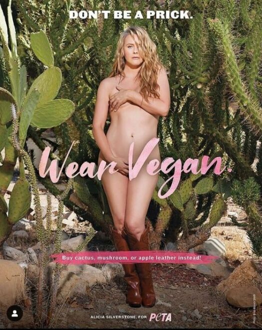 "Clueless" ve "Batman & Robin" filmleriyle tanınan ABD'li oyuncu Alicia Silverstone, hayvan hakları örgütü PETA için sadece kovboy çizmeleri giymiş bir şekilde poz verdi.