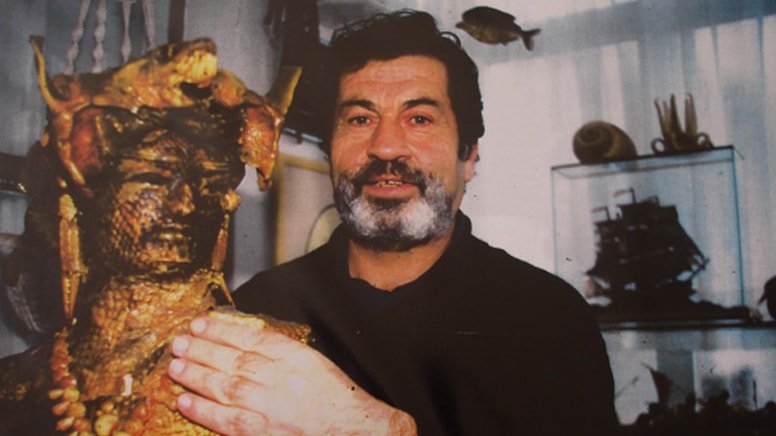 Deniz ürünlerini sanat eserlerine dönüştüren ressam ve balıkadam Celkan'ın, eserlerini ürettiği evinin müzeyi andırdığı belirtildi.