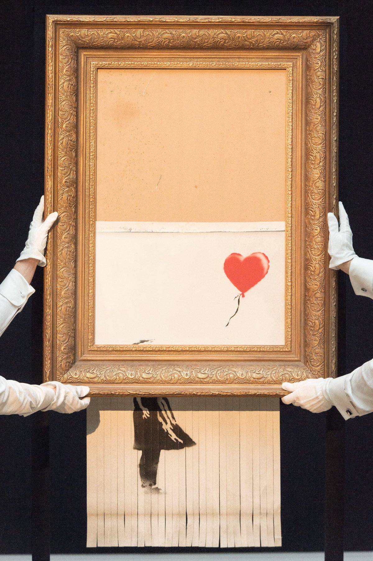 Dünyaca ünlü duvar resmi sanatçısı Banksy'nin 'Kırmızı Balonlu Kız' adlı eseri geçen yıllarda Londra'daki Sotheby's müzayede evinde 1 milyon sterline satılmasının hemen ardından içerisine gizlenmiş kağıt imha makinesi vasıtasıyla kendini yok etmişti. Sotheby's, Avrupalı koleksiyonerin eserin artık sanat tarihine damga vurduğunu düşündüğü için alış işlemini gerçekleştirmeye karar verdiğini duyurdu.