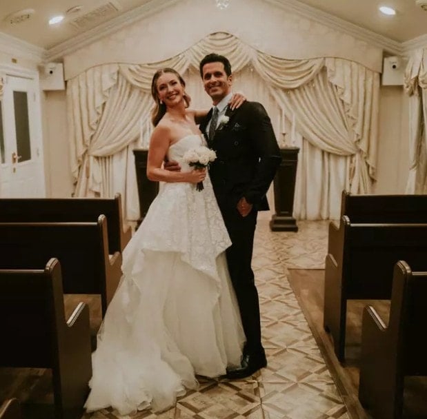 Öte yandan Yasemin Kay Allen’in tercih ettiği gelinlik de sosyal medyanın en çok konuşulan detayları arasında yer aldı. Straplez ve kalp yaka tasarımıyla klasik bir şıklık sunan gelinlik, dantel işlemeleriyle zarif bir görünüm kazandı. Belden aşağı doğru uzanan katmanlı ve hafif kabarık etek ise tasarıma romantik ve masalsı bir hava kattı.