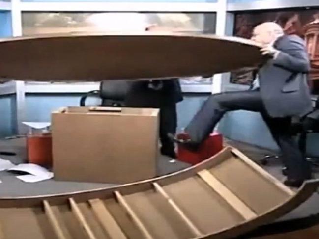 Sizin için derlediğimiz beş videodan en dikkat çekici olanı birkaç yıl önce Ürdün'de yayın yapan bir kanalda yaşanmıştı. Canlı yayında Suriye konusunu tartışan iki konuk birbirine girdi. Yüksek sesle karşılıklı suçlamalar yönelten konuklar, daha sonra aralarındaki masayı kırdı. Bununla da yetinmeyip ellerinde kalan tahta masanın altından tekmeler savurdu. Program moderatörü ve kanal çalışanları kavgayı zor durdurdu.