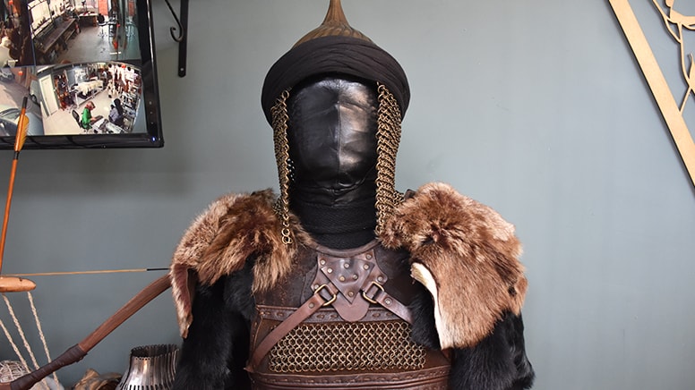 Savaş başlığı, miğfer, kalkan, zırh, balta, yüzük ve taht gibi aksesuarlar da yapan Kocaoğlu, dönem ruhunu yansıtması için imalatta tabaklanmış deri, pirinç döküm, ahşap ve kumaş gibi doğal malzemelerden yararlanıyor.