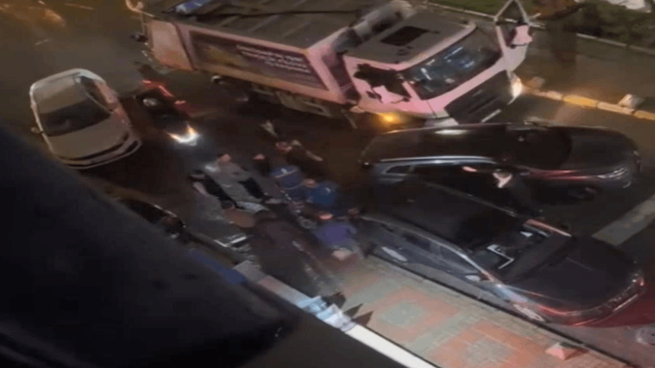 Kazaya karışan otomobillerde maddi hasar meydana gelirken, çöp kamyonu şoförüyle otomobil sürücüsü arasında henüz bilinmeyen bir nedenle tartışma çıktı. Tartışma kısa sürede kavgaya dönüştü. İki sürücü arasındaki tekmeli yumruklu kavga çevre sakinlerinin cep telefonu kamerası tarafından kaydedildi. Kavga eden tarafları çevredekiler ayırmaya çalıştı.