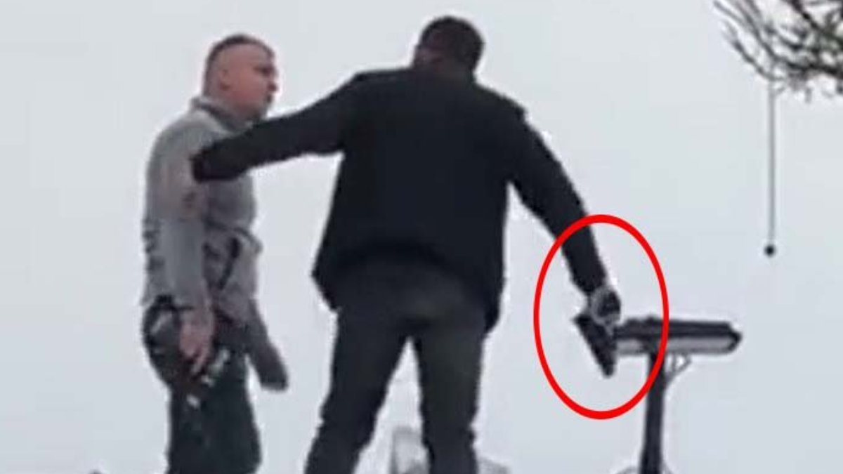 Üsküdar Zabıtası da yıkımın yapılacağı büfenin önüne geldi. İBB Başkanı Ekrem İmamoğlu’nun danışmanı Murat Ongun, sosyal medya hesabından “Kim bu silahlı kişi? Üsküdar’daki kaçak kafelerde neler oluyor?” notu ile skandal bir görüntü paylaştı.