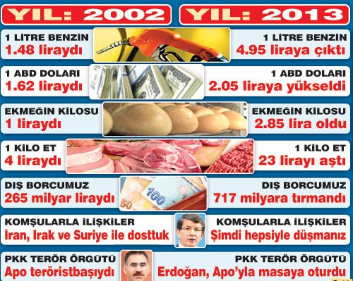 AKP iktidarında satılmadık tesis kalmadı. Borçlarımız katlandı. Dolar 2, benzin 5 lirayı aştı. Hukuk, sağlık ve eğitim sistemi altüst oldu. PKK ile masaya oturuldu