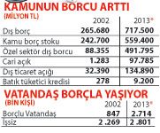 Erdoğan’ın 11 yıllık iktidarında vatandaş işsizlikle savaşırken, borç batağına saplandı. 2002’de 2 milyon 269 bin olan işsiz sayısı, bu yıl 2 milyon 526 bine yükseldi. İşsizlikle boğuşan vatandaşların bankalara olan borcu katlanarak arttı. 2002’de 278 milyon TL olan batık kredi tutarı, 2013’te 9.2 milyar TL’ye ulaştı.