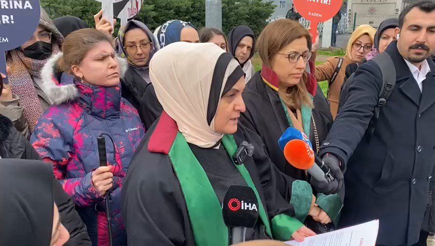 Kadın ve Demokrasi Derneği (KADEM) üyeleri, davanın görüldüğü adliyenin önünde basın açıklaması yaptı. KADEM Hukuk Kurulu Başkanı Helin Görgül, yaptığı açıklamada şu ifadeleri kullandı: