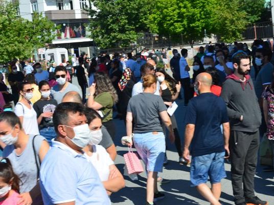 İstanbul Avcılar'da üç okulun birbirlerinin yanında bulunduğu Yeşilkent Mahallesi'nde yakınlarını sınav salonlarına getiren veliler uyarılara rağmen sosyal mesafe kuralını hiçe saydı.