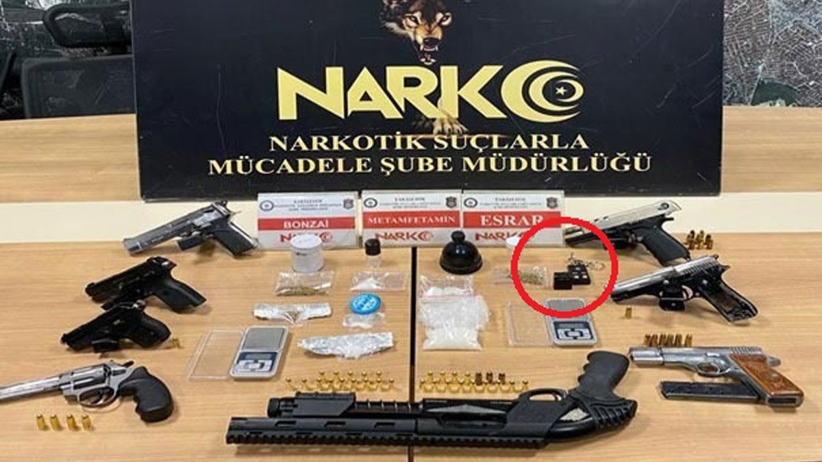 Bir süre izlenen K.K, B.E, N.E ve S.K. yakalanıp gözaltına alındı. Yapılan aramalarda 47,38 gram metamfetamin, 1,30 gram bonzai, 0,80 gram esrar, 2 adet hassas terazi, 6 tabanca, 1 adet anahtarlık şeklinde tabanca, 1 adet pompalı tüfek, 1 adet kurusıkı tabanca ile 50 adet fişek ele geçirildi.