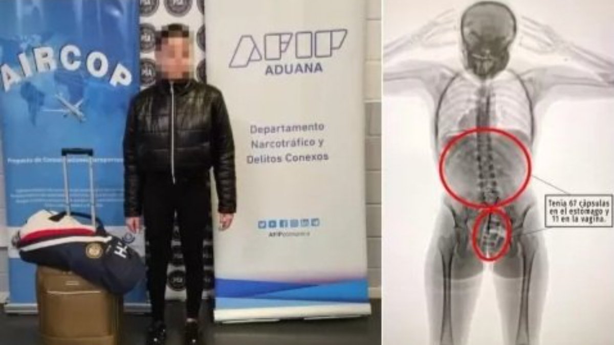 Kokain kaçırmaya çalışan kadının vajinasından prezervatife sarılmış 11 kapsül bulunurken 67 kapsül de midesinden çıktı. Buenos Aires'teki Ezeiza Uluslararası Havalimanı'nda yaşanan olay uluslararası kamuoyunun gündemine oturdu.