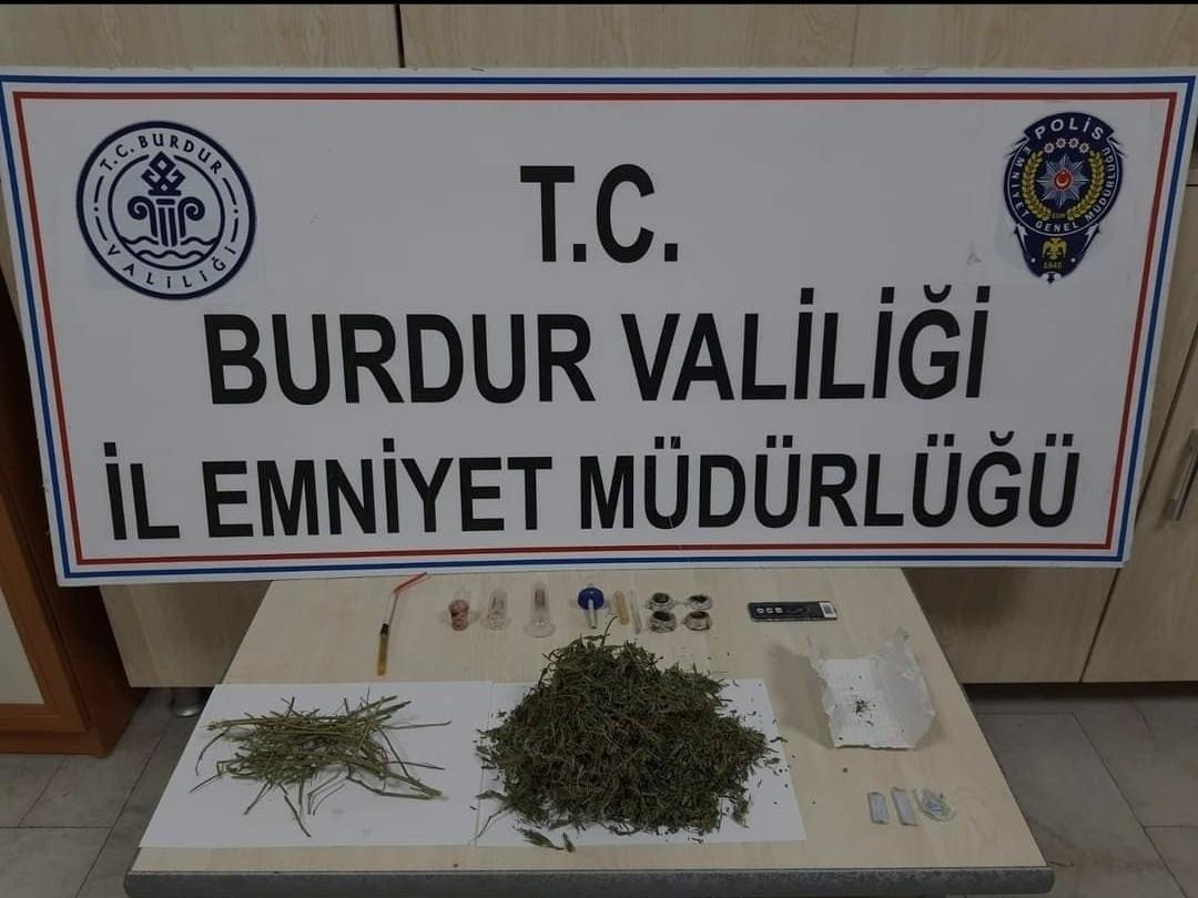 Burdur’da polis ekiplerinin zehir tacirlerine yönelik düzenlediği operasyonda üst araması yapılan bir kişide polis rozeti bulundu.