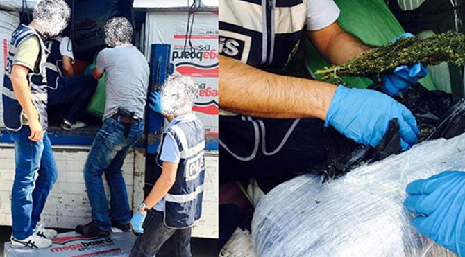Gelen bir ihbar sonucu harekete geçen Antalya Emniyet Müdürlüğü Kaçakçılık ve Organize Suçlarla Mücadele Şube Müdürlüğü (KOM) Narkotik Büro ekipleri, TIR'la yüklü miktarda uyuşturucu maddesi getirildiği bilgisini değerlendirdi. Helikopterden kameralarla TIR'ı takip eden polis, Organize Sanayi Bölgesi'nde TIR'a operasyon düzenledi. Yola iş makinesi ve kamyonlarla barikat kurupdu.  Operasyonda köpeklerde kullanıldı. Polis, esrarın 218 kilosunun ot halinde olduğunu, 31 kilo 640 gramının da toz halinde olduğunu belirledi.