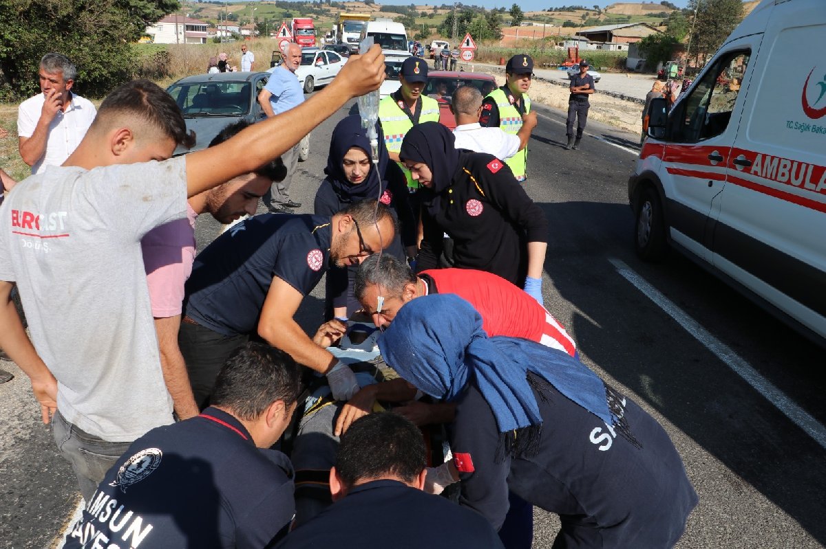 Savrulan otomobillerden biri, kaza yerinden geçen Aslan Bilen (43) yönetimindeki motosiklete çarptı. Kazada, sürücüler ile araçlardaki Fatma Betül Tütüncü (41), Berk Tütüncü (8), Beren Tütüncü (13), Aslan Bilen, Kübra Eğilmez (22) ve 4 aylık Aplarslan Eğilmez yaralandı.