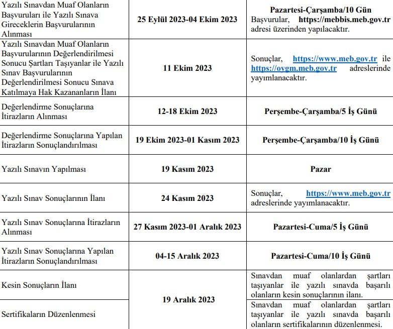 Başvuru sonuçları 13 Haziran 2023 günü https://www.meb.gov.tr ile https://oygm.meb.gov.tr adreslerinde yayımlanacak.