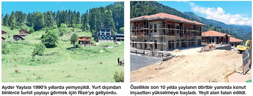 Kaçak yapıların yıkılması kararı alınmasına karşın yapılaşma nedeniyle yaylada küçük bir yeşil alan yayla görevi görüyor. Ticari yaylaya dönüşen Ayder Yaylası’nda TOKİ de uygun yapı olarak projelendirdiği binaların inşaatına başladı.