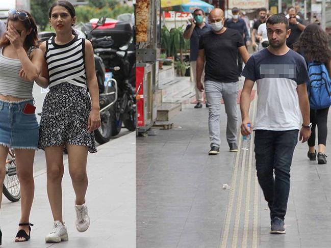 Kentin en işlek caddeleri arasında yer alan merkez Yenişehir ilçesindeki Yaşar Kemal Caddesi'nde de yürüyenlerin arasında maskesiz çok sayıda kişi görüldü. Maskeleri kollarına veya çene altlarına takarak gezenler ise kameraları görünce yüzlerini kapatmaya çalıştı.