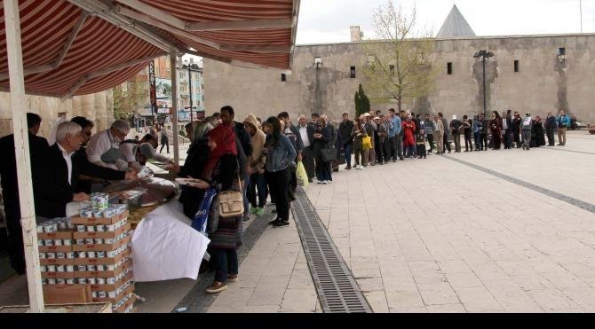 SİVAS'ta '9-15 Mayıs Vakıf Haftası' nedeniyle Vakıflar Bölge Müdürlüğü tarafından bin kişilik yemek dağıtıldı. Yemek stantı önünde uzun kuyruk oluştu.