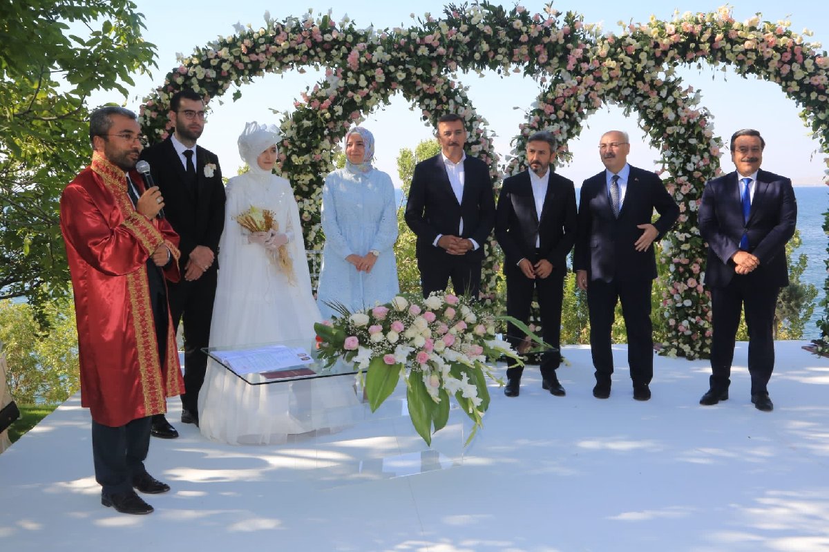 Vali Bilmez ve eşi Meral Bilmez'in konuklarını kapıda karşıladığı, AKP'li Edremit Belediye Başkanı İsmail Say'ın kıydığı nikahın şahitliğini ise eski Gümrük ve Ticaret Bakanı Bülent Tüfekçi, eski Aile ve Sosyal Politikalar Bakanı Fatma Betül Sayan Kaya, eski TBMM Başkan Vekili Ahmet Aydın, Hakkari Valisi İdris Akbıyık, İzmir Valisi Yavuz Selim Köşger, AKP Van milletvekilleri İrfan Kartal, Abdulahat Arvas, Osman Nuri Gülaçar ile AKP MKYK Üyesi Burhan Kayatürk ve AKP Van İl Başkanı Kayhan Türkmenoğlu yaptı.
