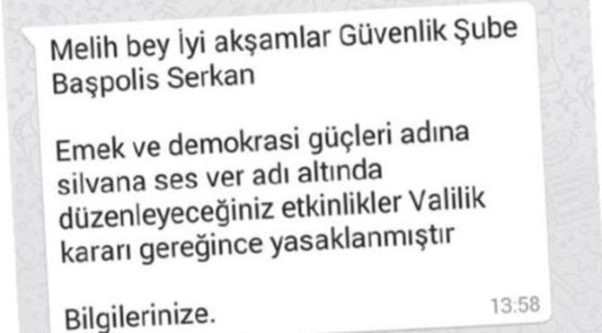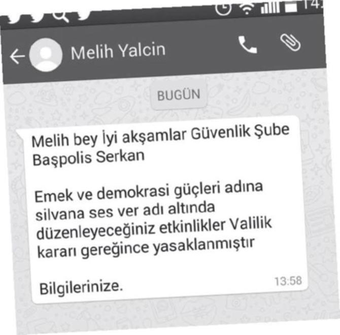 Emniyetin eyleme 1 saat kala cep telefonu mesajıyla ulaştığı platform yöneticilerinden TMMOB temsilcisi Melih Yalçın, “Emniyet, her ortamda insanlara ulaşabildiğini bir kez daha kanıtladı. Barışçıl eylemlere karşı bu kadar hızlı davranabiliyorlarsa, aynı hızlı refleksi örneğin Ankara katliamındaki gibi ellerinde listesi bulunan canlı bombalara karşı da bekliyoruz” dedi.
