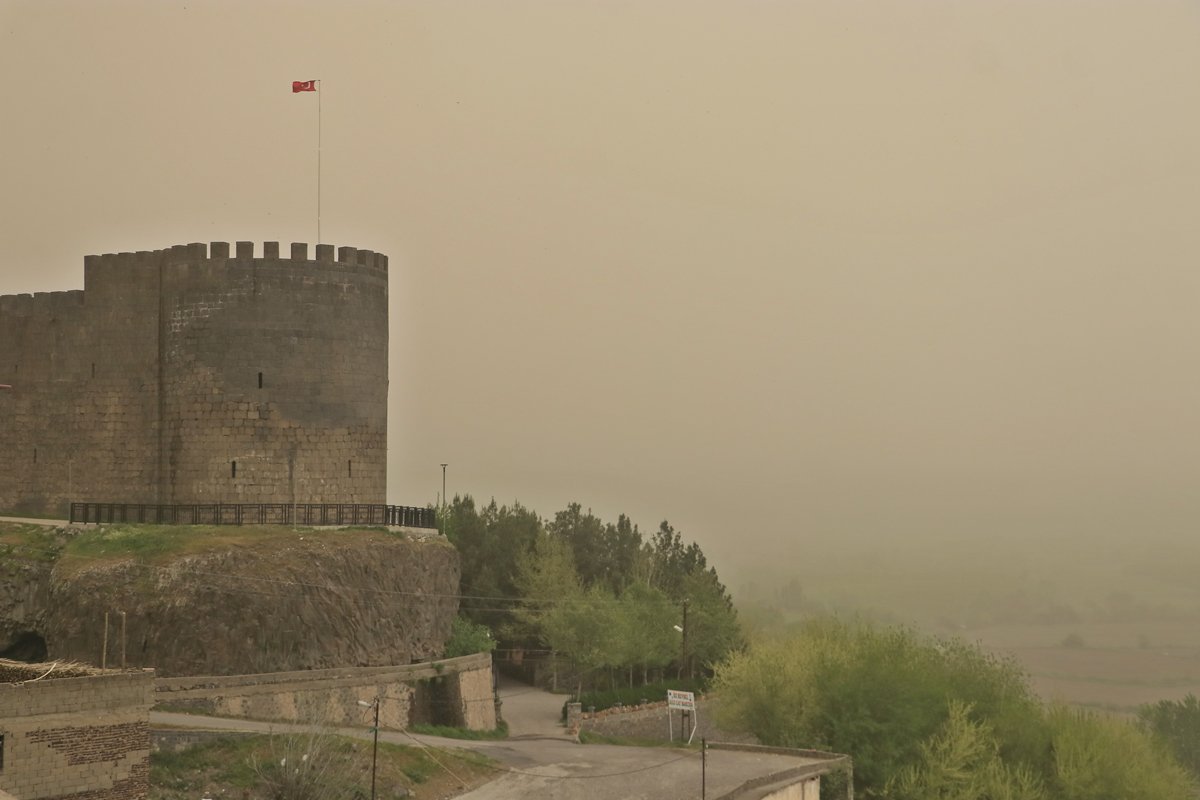 Diyarbakır'da UNESCO Dünya Kültür Mirası Listesi'nde yer alan Hevsel Bahçeleri ile Ergani ilçesinde Makam Dağı ve Mardin'deki tarihi yapılar toz bulutu nedeniyle görünmez hale geldi.