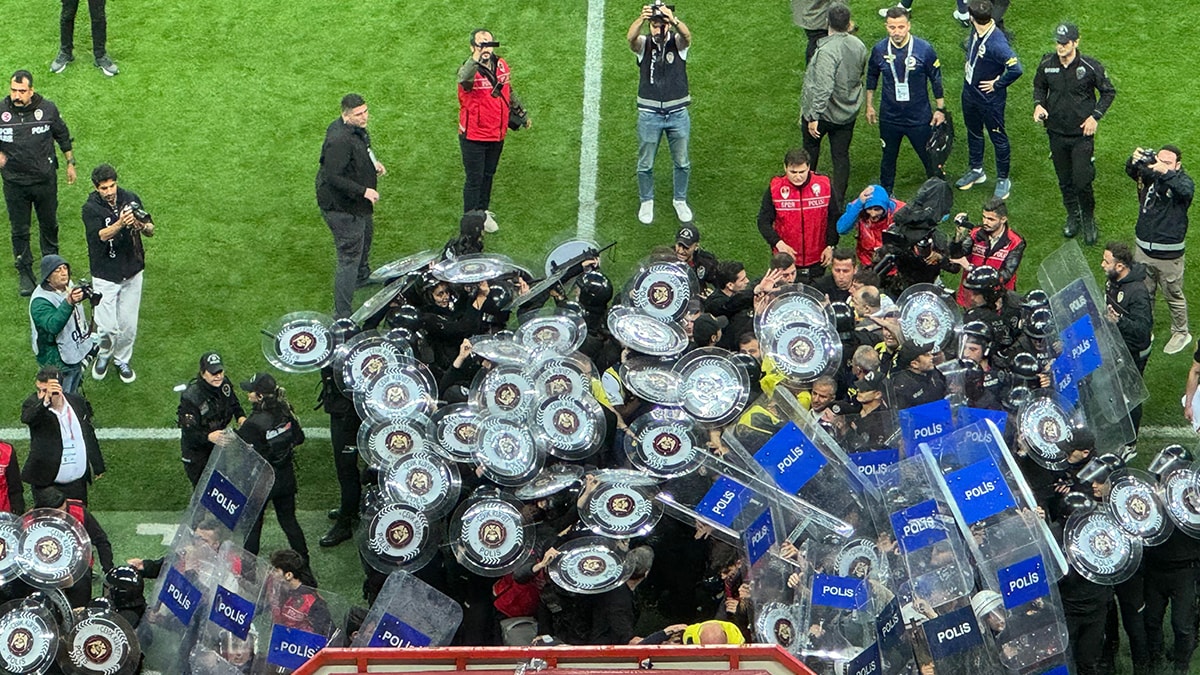 - Yaşanan olay üzerine, Fenerbahçe Futbol Takımının güvenliğini sağlamakla görevli emniyet güçlerimiz, saha içerisine girerek olaylara müdahale etmiştir.