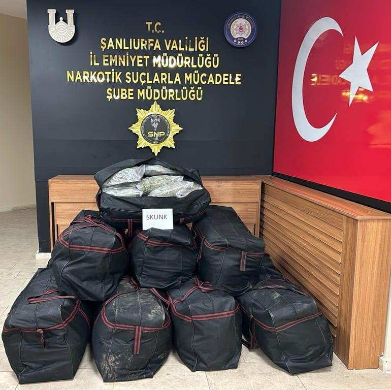 Araçta yapılan aramada, 13 valiz içinde 177 kilogram skunk ele geçirildi.