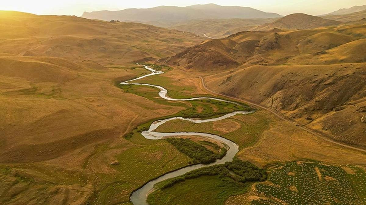 Sağanakla beraber debisi yükselen menderesler, dron ile görüntülendi.