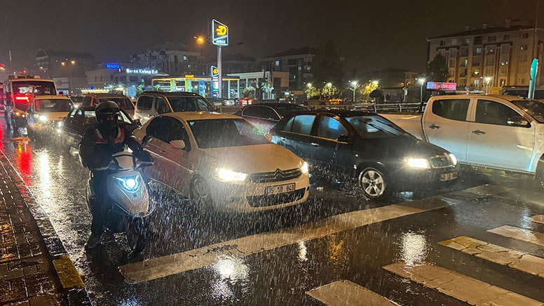 Trafiğin aksamaması için polis ekipleri kavşaklarda önlem aldı, kent sakinleri de duraklara sığınarak yağıştan korunmaya çalıştı.