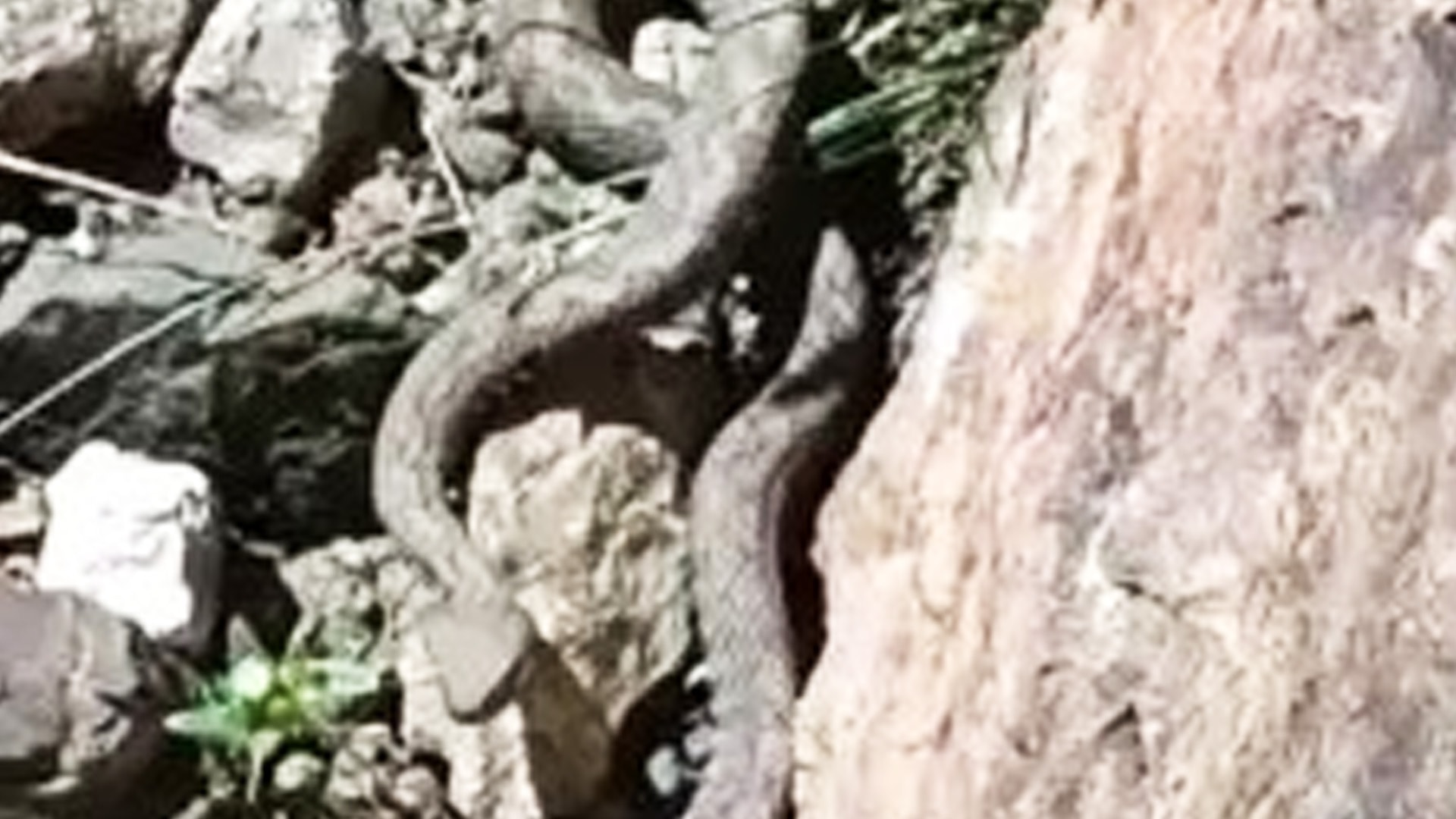Coşar dağda gezerken, Türkiye'nin en zehirli yılanlarından redde engerek yılanını görüntüledi.