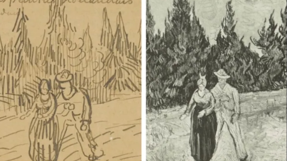 Van Gogh’un bu eseri, kol kola yürüyen bir çiftin tasvirini içeriyor ve erkek figürü sanatçıya benzerlik gösteriyor.