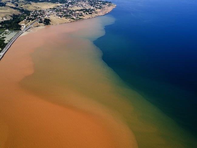 İlçenin Ahlat-Tatvan yolu üzerindeki 10 kilometrelik hattın göle dökülen sel suları sonrası rengi değişirken, ortaya çıkan görüntü ise havadan drone ile görüntülendi.