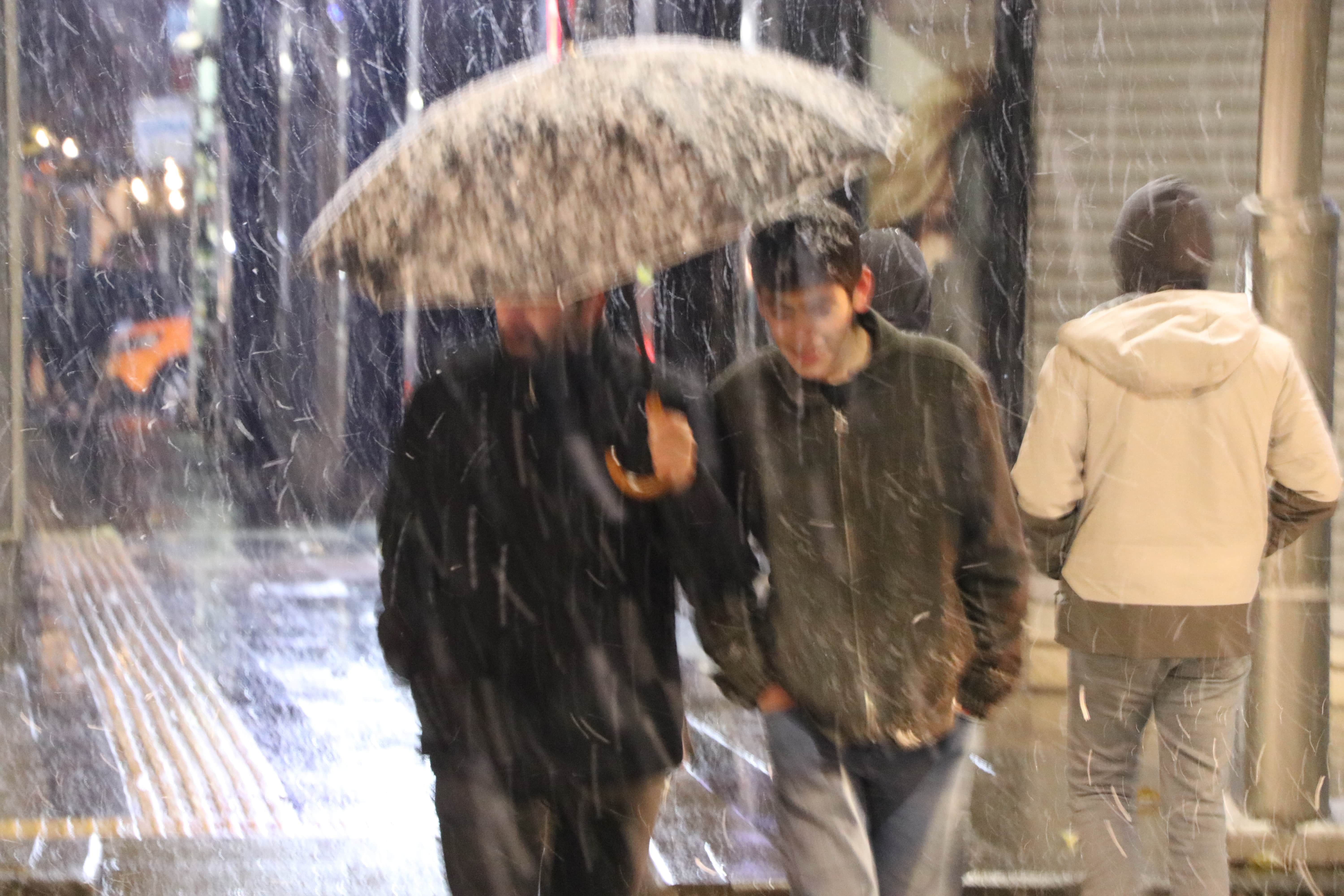 Vatandaşlar, lapa lapa yağan yağışın altında gezintiye çıktı.