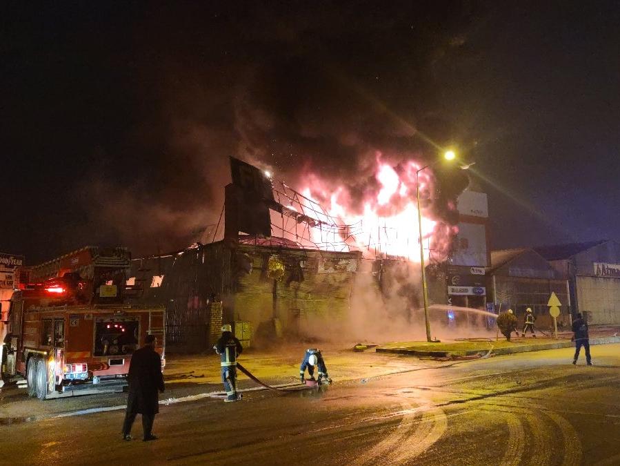 Van merkez Tuşba ilçesi inşaat malzemelerin satıldığı iş yerinde çıkan yangın büyük korkuya neden olurken, itfaiye ekipleri yangına çok sayıda araçla müdahale ediyor.