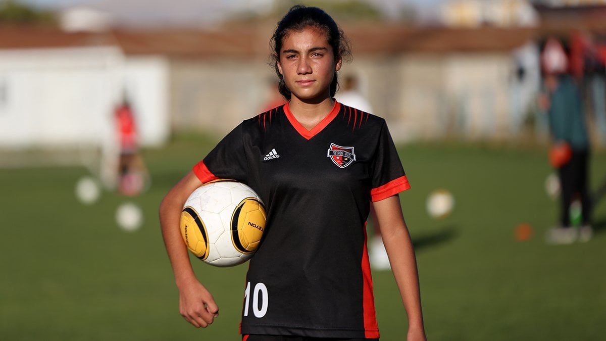 Genç futbolcu, son olarak tüm genç kızlara mesaj verdi: "Kızlar hiç pes etmesinler, ayaklarının üstünde durmasını bilsinler. Mücadelelerini hiç bırakmasınlar. Keyif alsınlar." (AA)